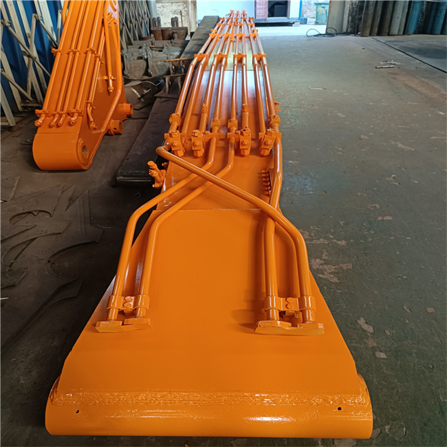 挖掘機加長臂有兩段式挖掘機加長臂和三段式挖掘機加長臂,兩段式挖掘機加長臂主要應用于土石方基礎和深塹挖掘工作,河道整治;三段式挖掘機加長臂主要應用于高層建筑的拆卸等工程。根據杠桿原理和力學原理,加長臂挖掘機的受力比之前減少,應該最好不要去重工作的場所施工。